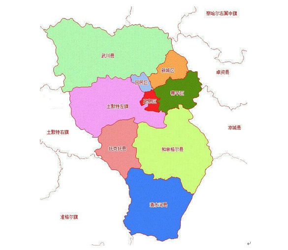 呼和浩特中心城區含賽罕區、新城區、回民區、賽罕區和兩個國家級經濟開發區金川開發區、如意開發區)。